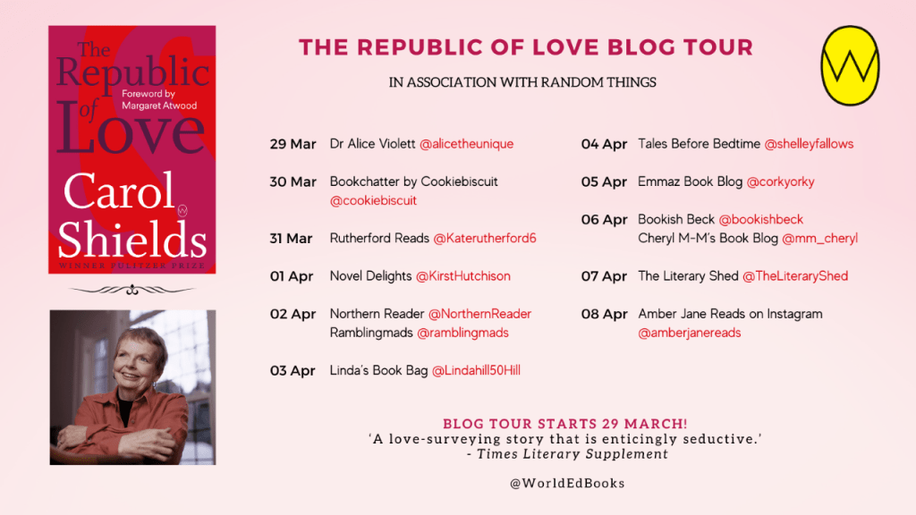 Probably my only criticism is that the book is overlong by quite a long way which left me a little frustrated at times. It often says a lot about very little and I needed the writer to move the story forward. However, the beauty of the writing made up for it, but you need to be patient. Nowadays readers often want a book to be like a film, with non-stop action and instant gratification. With Republic of Love you need to savour the prose and relish the settings and the characters – even the minor ones. Ultimately, I really enjoyed it.