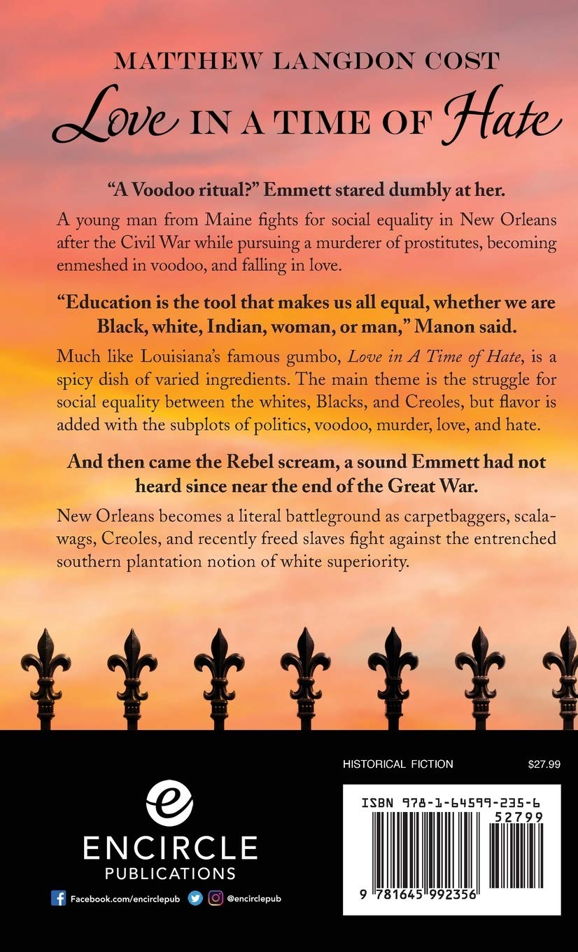 Much like Louisiana’s famous gumbo, Love in A Time of Hate, is a spicy dish of varied ingredients. The main theme is the struggle for social equality between the whites, Blacks, and Creoles, but