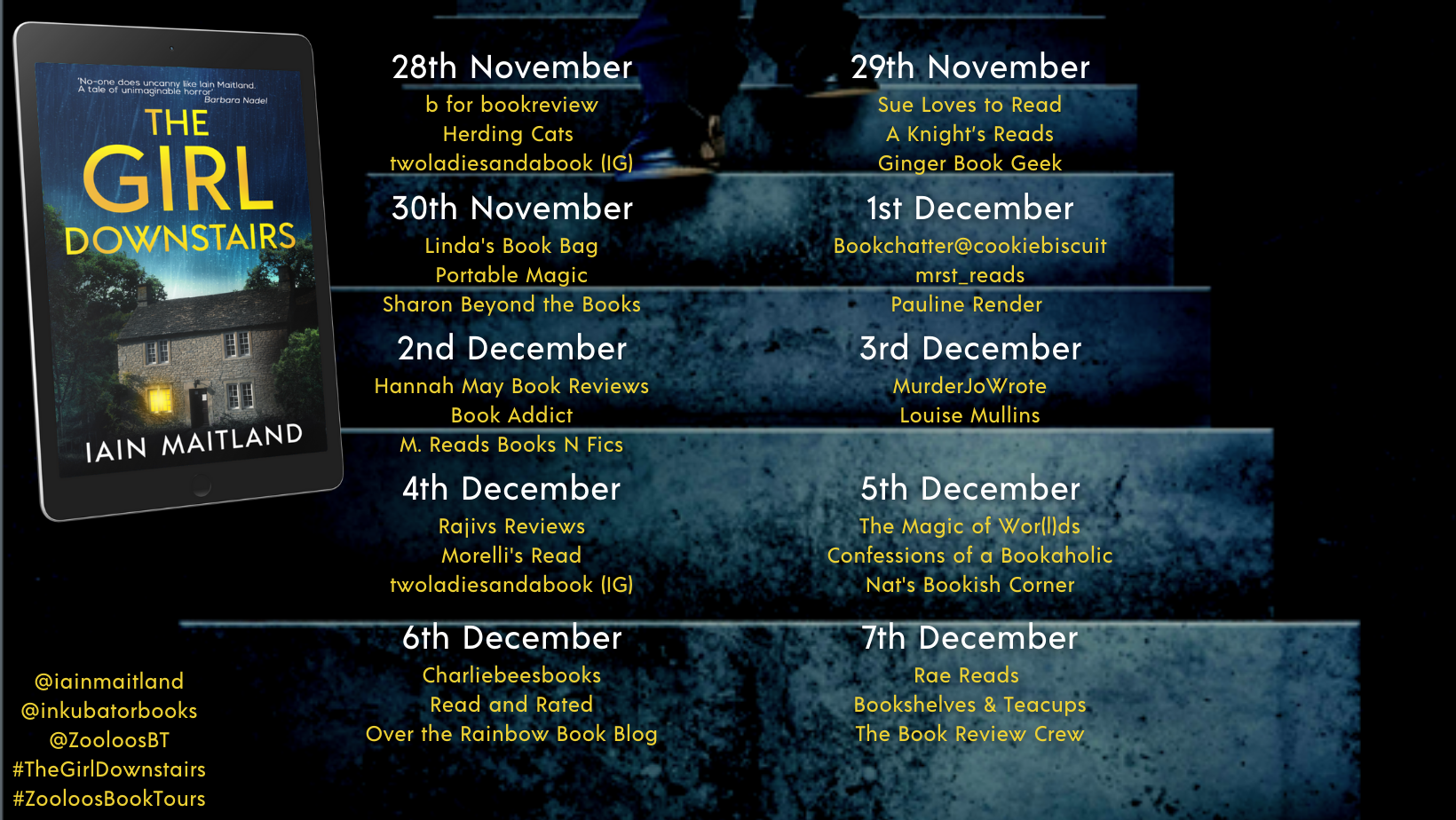 #TheGirlDownstairs @iainmaitland @inkubatorbooks @Zooloo’s Book Tours @zooloo2008 #ZooloosBookTours #blogtour