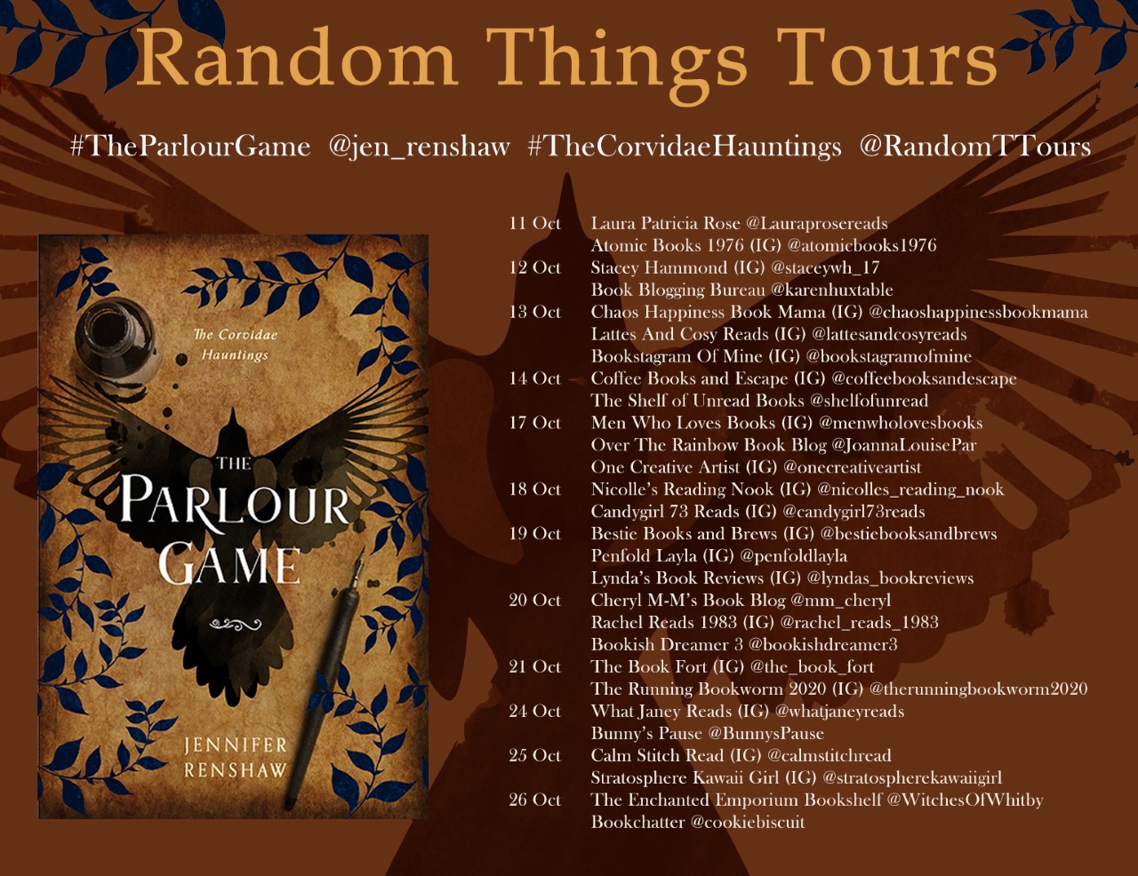 #TheParlourGame #JenniferRenshaw Instagram @jen_renshaw #TheCorvidaeHauntings #RandomThingsTours @annecater @RandomTTours #blogtour
