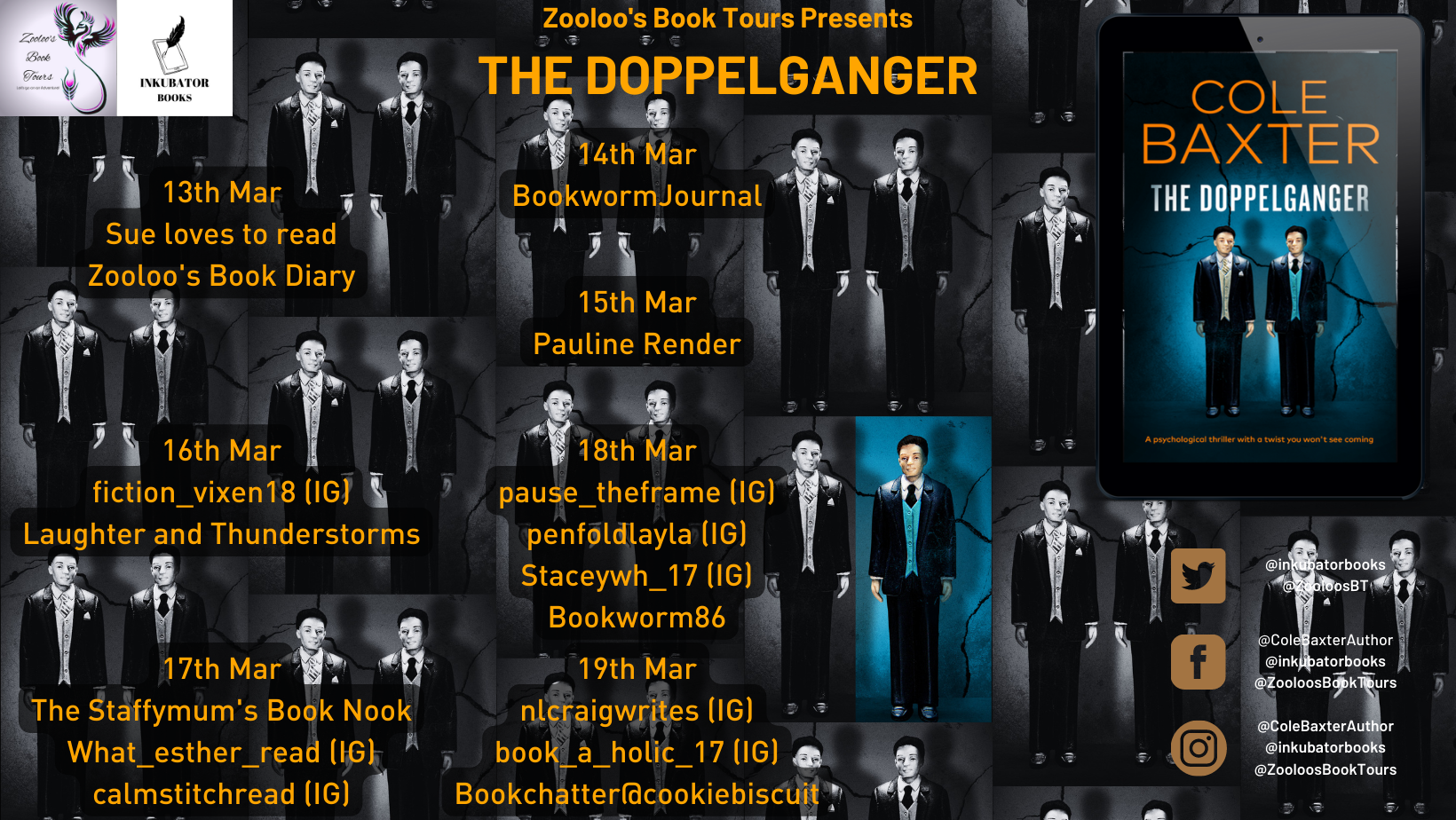 #TheDoppelganger #ColeBaxter @inkubatorbooks @Zooloo’s Book Tours @zooloo2008 #ZooloosBookTours #blogtour