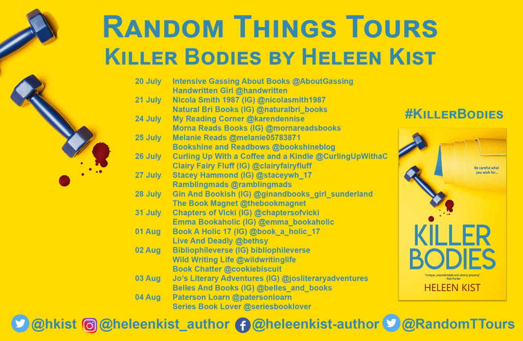Heleen Kist is a Dutch, formerly globetrotting career woman who fell in love with a Scotsman and his country, and now writes about its (sometimes scary) people from her garden office in Glasgow. Killer Bodies is her fourth novel, inspired by her hatred of exercise. She was chosen as an up-and-coming new author at Bloody Scotland 2018. Her novels have been finalists in a variety of awards, both in the UK and USA, and she years to someday ‘be the bride’.