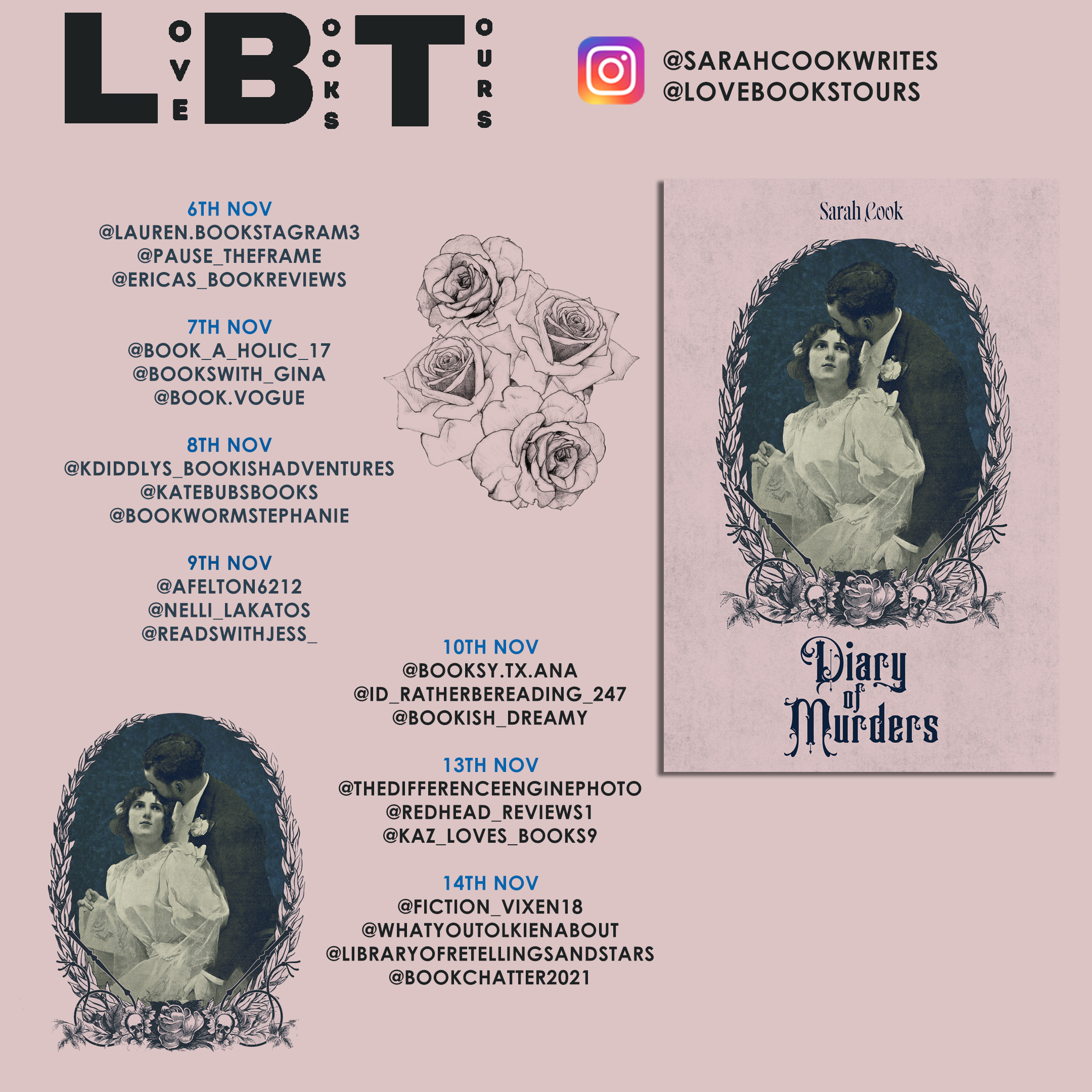 X (Twitter) #DiaryOfMurders @sarahcookwrites @KellyALacey @lovebookstours #Ad #LBTCrew #BookTwitter Instagram @sarahcookwrites