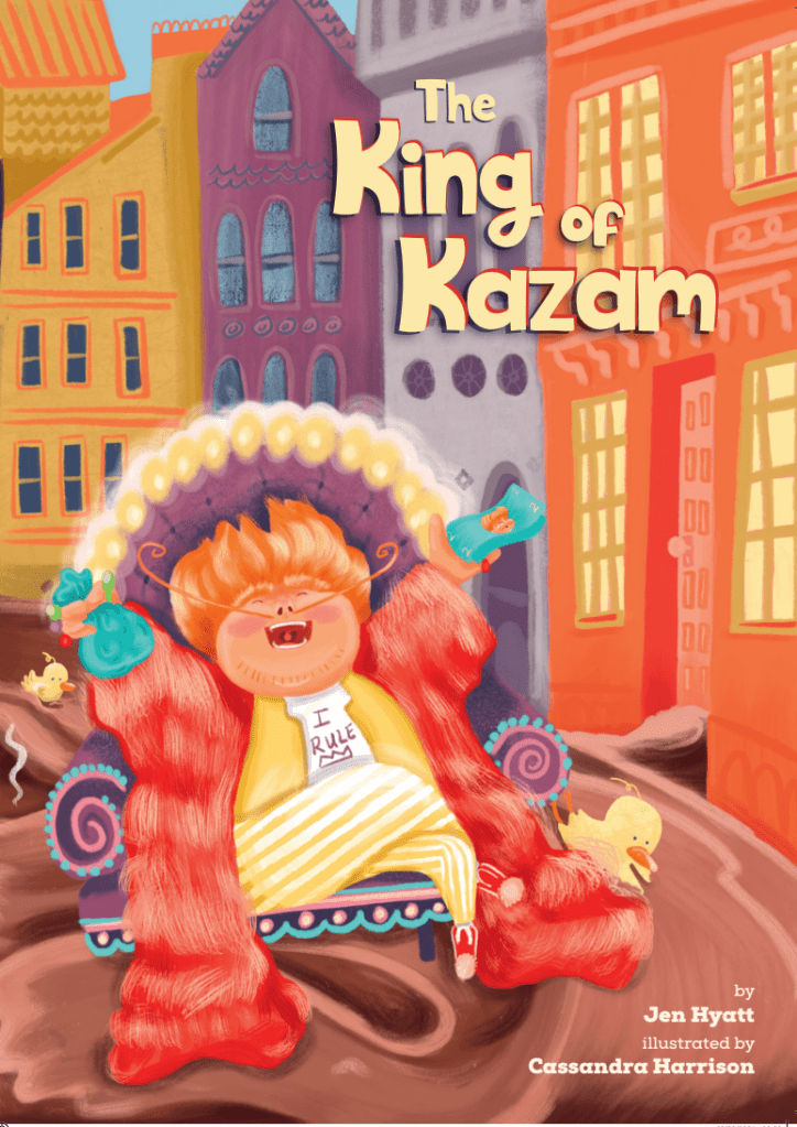 Is this a book about poo? Because we know that kids think the word ‘poo’ is hilarious. Well it is, but in reality The King of Kazam is about vanity, pride and greed. Even the king’s children think he is greedy. They want playgrounds with swings and unicorn rides. But the King just wants tributes to himself. And to do that he needs money.