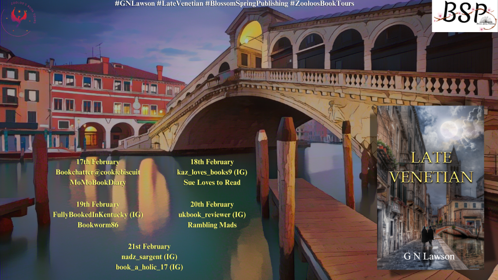 #LateVenetian X(Twitter) #GNLawson @BlossomSpring3 @ZooloosBT #ZooloosBookTours #blogtour #booktwitter
