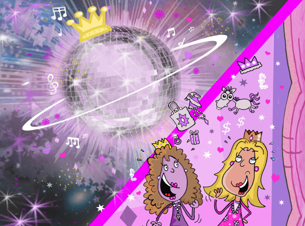‘A few hundred more space miles away is another planet spinning in the sky. This one looks like a sparkly floating disco ball. Welcome to The Planet of the Princesses’, where almost everything is pink. But they are not nice princesses. Oh no! They are bad, really BAD.