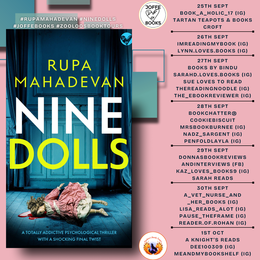 #NineDolls X(Twitter) @JoffeBooks #RupaMahadevan @ZooloosBT #ZooloosBookTours #booktwitter